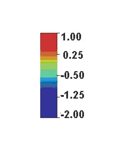 In the following mpeg animations from left to right we show the incident wave, the scattered wave from the "passive" ostacle and the scattered wave from the "active" obstacle. The colour scale used in the mpeg animations is the following one: